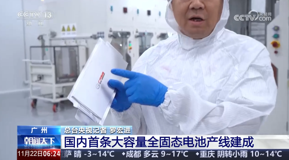 央视新闻:全固态电池是未来新能源汽车产业发展的重要新动力。记者近日获悉,首条大容量全固态电池生产线已建成,目前正在进行小批量测试和生产。记者发现,这款“水”电池的优势其实来自于生产线的两大创新。在负极制造过程中,传统液体电池要经过原浆、涂布、纺丝三个独立的工序。这里采用的干法工艺直接将原有工艺“三合一”,不仅降低了能耗,还提高了效率。专家告诉记者,除了优化生产工艺外,另一个突破就是电解液的替代。在这里,他们离开了传统的液体电解质,转而采用自主研发的固体电解质材料,帮助大幅提升验证产品的耐热性和安全性。该生产线取得技术突破,下一步将开展产业化。广汽集团建成第一条大容量全固态电池生产线,在行业内率先具备量产60AH以上全固态电池的条件。